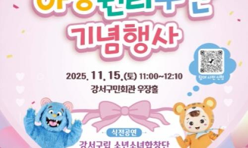 서울 강서구(구청장 진교훈)가 오는 15일(토)부터 21일(금)까지 일주일간 '2025년 아동권리주간'을 운영한다.이번 주간은 '세계 아동학대 예방의 날(11월 19일)'과 '유엔 아동권리협약 비준일(11월 20일)'을 기념해 아동 보호에 대한 지역사회 인식을 높이고자 마련됐다.슬로건은 'ALL 4(FOR) YOU'로 유엔아동권리협약이 담...