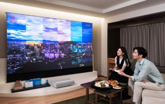 삼성전자가 워커힐 호텔앤리조트와 함께 프리미엄 빔프로젝터 ‘더 프리미어(The Premiere)’를 객실에서 체험할 수 있는 ‘시네마 스위트 with 삼성 더 프리미어’ 객실 패키지를 선보인다고 18일 밝혔다.이 객실 패키지는 서울 광장동에 있는 워커힐 호텔앤리조트의