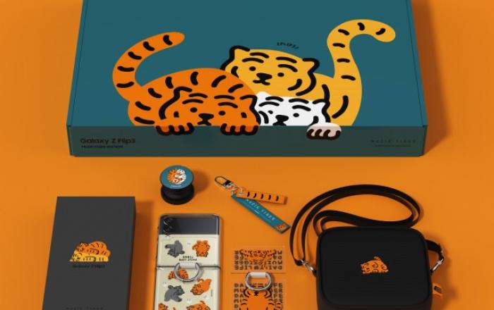 삼성전자가 16일 ‘갤럭시 Z 플립3 무직타이거 에디션’을 한정 판매한다.무직타이거는 ‘직장을 떠나 원하는 일을 하는 자유로운 삶을 지향, 응원’하는 콘셉트의 캐릭터 디자인 브랜드이다. 대표 캐릭터인 ‘뚱랑이’가 MZ세대의 큰 사랑을 받고 있다.패키지는 갤럭시 Z 플립