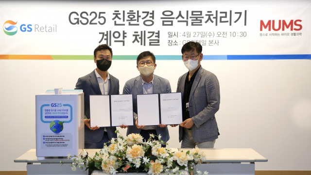 GS리테일이 운영하는 편의점 GS25는 친환경 녹색 음식물처리기 전문기업 MUMS (멈스)와 함께 27일 전국 1만 6000여 GS25 편의점에 향후 5년간 친환경 미생물 액상 발효 방식의 음식물처리기를 도입하며 음식물쓰레기 ‘제로(Zero)’화 프로젝트에 앞장선다고 28일 밝혔다.