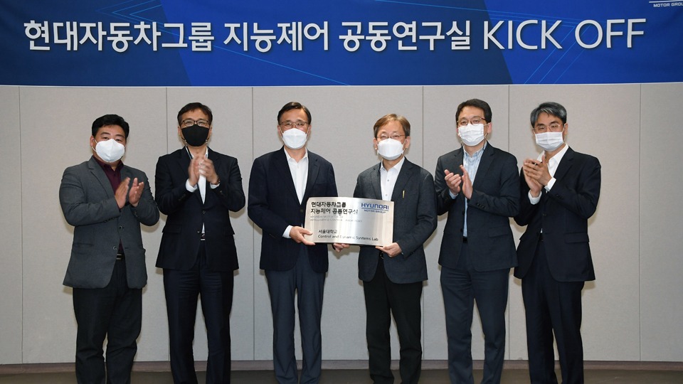 현대자동차·기아는 지난 27일(수) 서울 관악구에 위치한 서울대학교 교수회관에서 서울대학교·연세대학교·광운대학교 및 현대자동차·기아 연구개발본부 관계자들이 모인 가운데 ‘지능 제어 공동연구실’ 설립을 기념하는 행사를 가졌다.