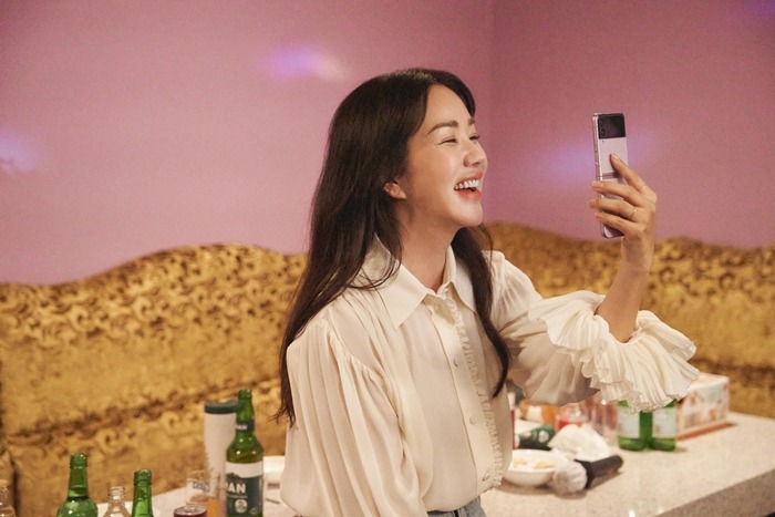 이어 왜 제주에는 오지 않느냐며 서운한 마음을 드러내는 정은희에게 “내가 너 너무너무 사랑하는 거 알지?”라고 애교 가득한 목소리로 되받아치며 특유의 밝고 능청스러운 고미란의 모습을 완벽 소화했다. 뿐만 아니라 화면 너머 속 정은희를 바라보며 노래를 부르고 춤을 추는 고미란의 모습과 그에게 화답하듯 함께 웃어 보이는 정은희의 모습은 제주 푸릉마을에서 자라고 학창 시절을 함께 보낸 두 사람의 친밀한 관계를 짐작하게 했다. 그러나 시끌벅적한 회식 장소에 있는 고미란과 지친 일과 후 늘어진 채 집에 있는 정은희. 두 사람의 극과 극 모습은 앞으로 보여줄 스토리에 기대감을 불러일으키기 충분했다.