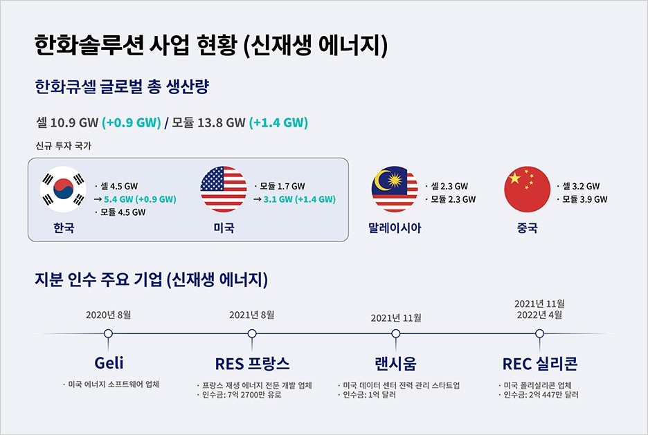 이날 한화솔루션은 미국에 약 2000억원을 투자해 1.4GW 규모의 태양광 모듈 공장을 건설한다는 계획도 공개했다.