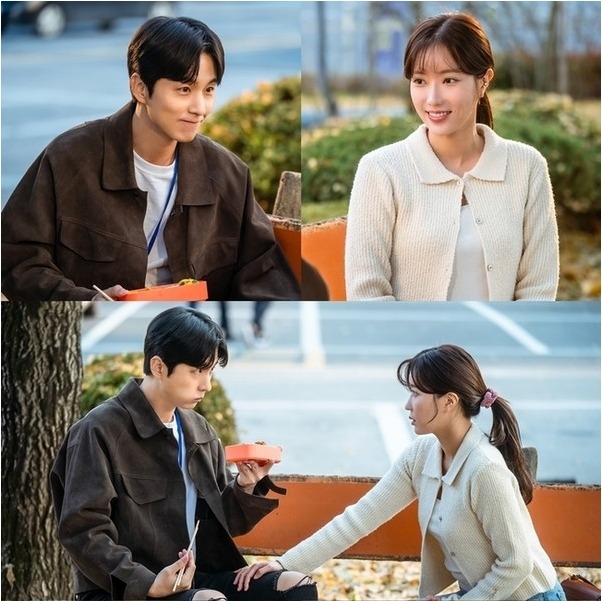 17일(오늘) 공개된 스틸 속 오우리와 이강재는 한적한 공원 벤치에 앉아 도시락 데이트를 즐기고 있어 보는 이들의 설렘을 유발한다. 특히 오우리는 이강재의 허벅지 위에 과감하게 손을 올리는가 하면, 꿀 떨어지는 눈빛으로 그를 바라보고 있어 흔들림 없는 애정전선을 짐작하게 한다.