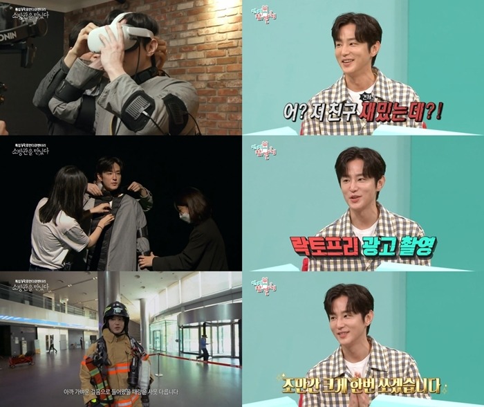 이날 권율은 약 20kg 정도 되는 소방 장비를 몸에 메고 방송국 지하 1층을 출발해 체험 스튜디오가 있는 3층까지 직접 계단을 올랐다. 얼마 안 되는 거리처럼 보이지만, 방화복과 공기호흡기 등 일부 장비를 갖춘 채 계단을 오르는 일은 쉽지 않은 일. 스튜디오에 도착한 권율은 숨을 고르며 땀을 흘렸고, 화재 진압 현장에서 소방관들이 그냥 걷는 것조차 쉽지 않은 일임을 알려줬다.